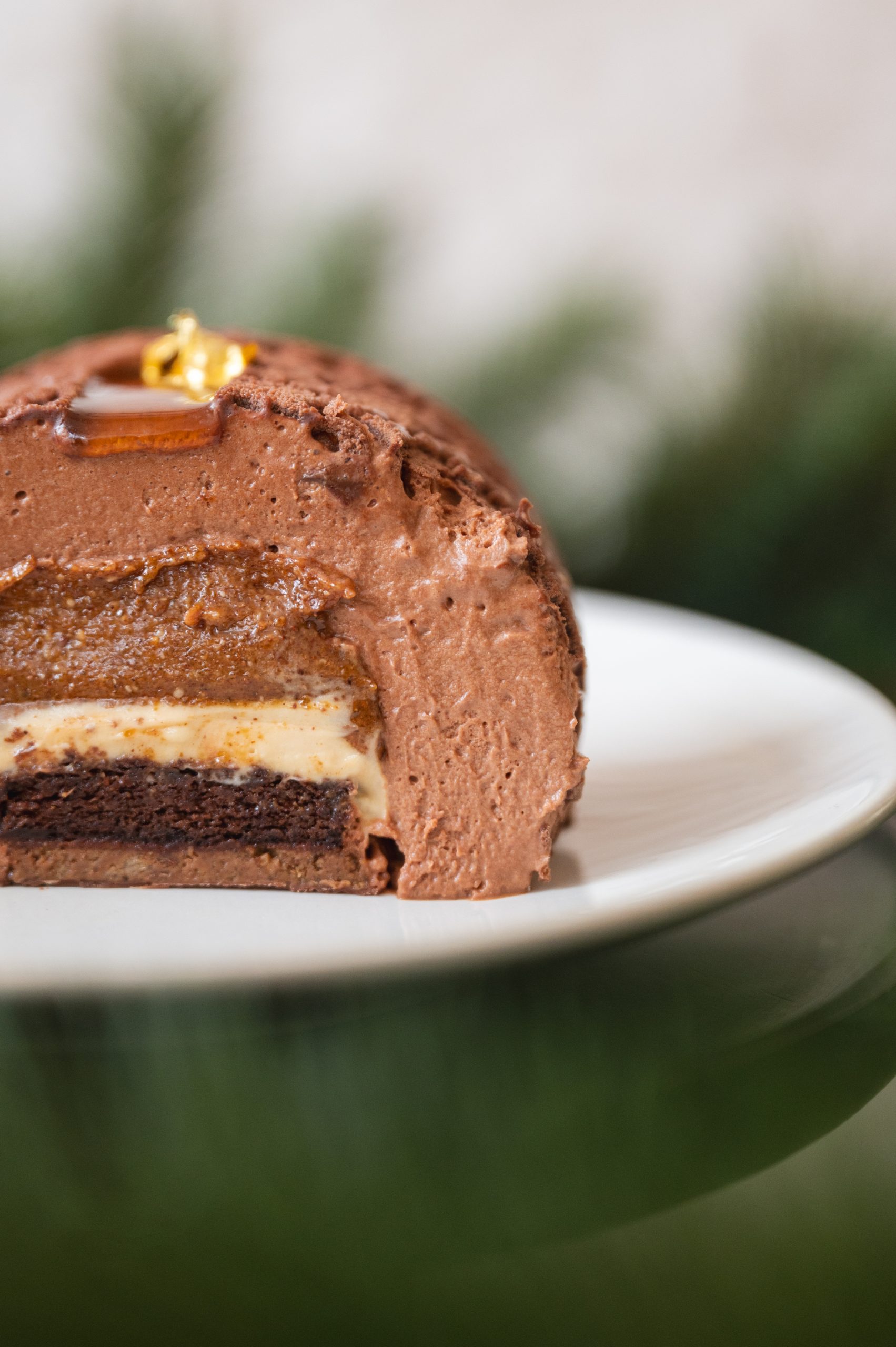 Signature NEJA Pâtisserie, un hommage à la puissance du chocolat et à la délicatesse des textures. Une création riche, contrastée, où la profondeur du cacao rencontre la gourmandise d’un praliné au grué et la fraîcheur du mucilage.