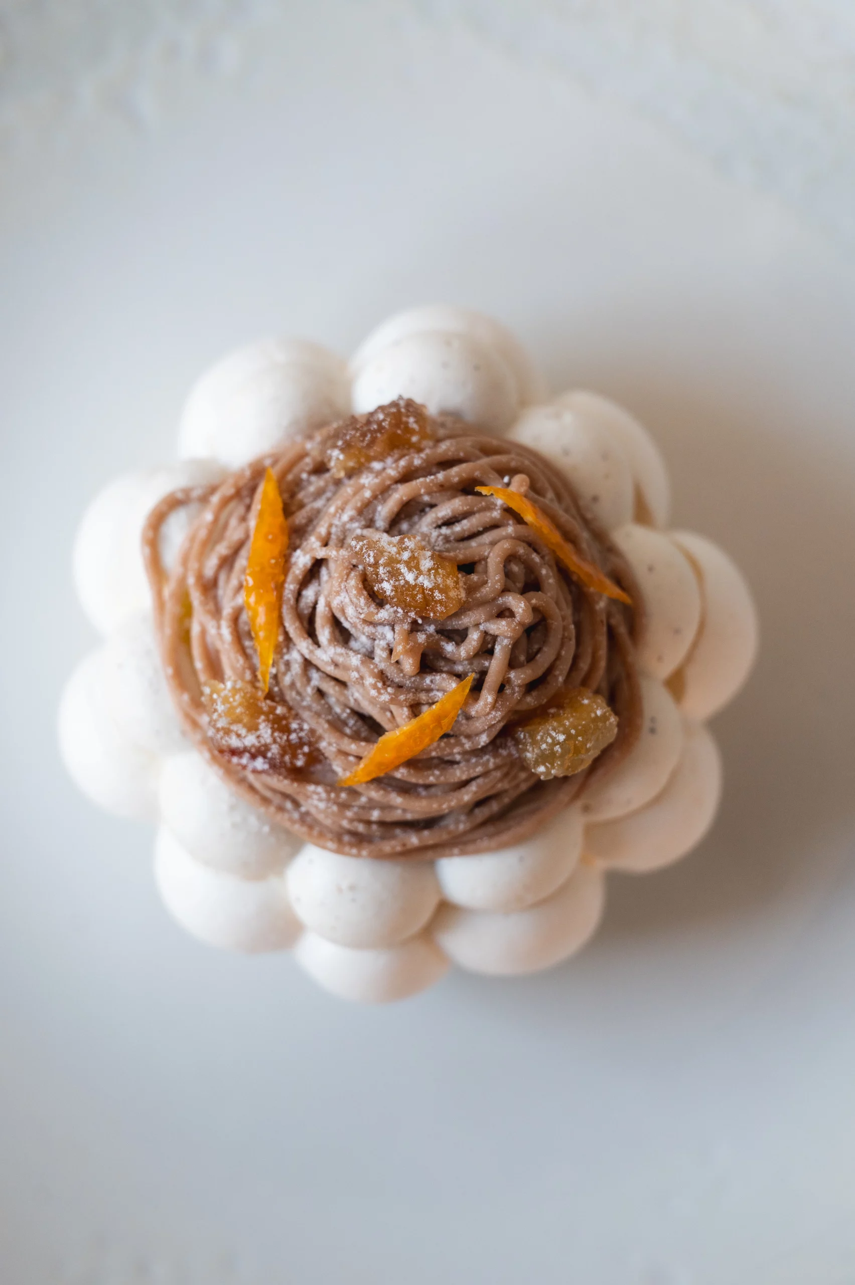 «Une meringue légère mariant la douceur du marron à la fraîcheur de la mandarine.»